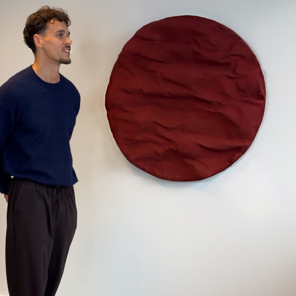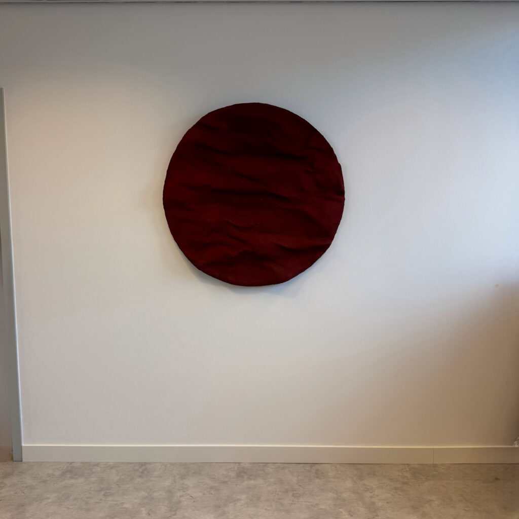 A round work with the full presence of stone. Undulart Terra Moon has the same deep Mars Red tone as the other Terra pieces, but here the form is thicker and more raw. The surface feels rocky and heavy, like a fragment shaped by time.